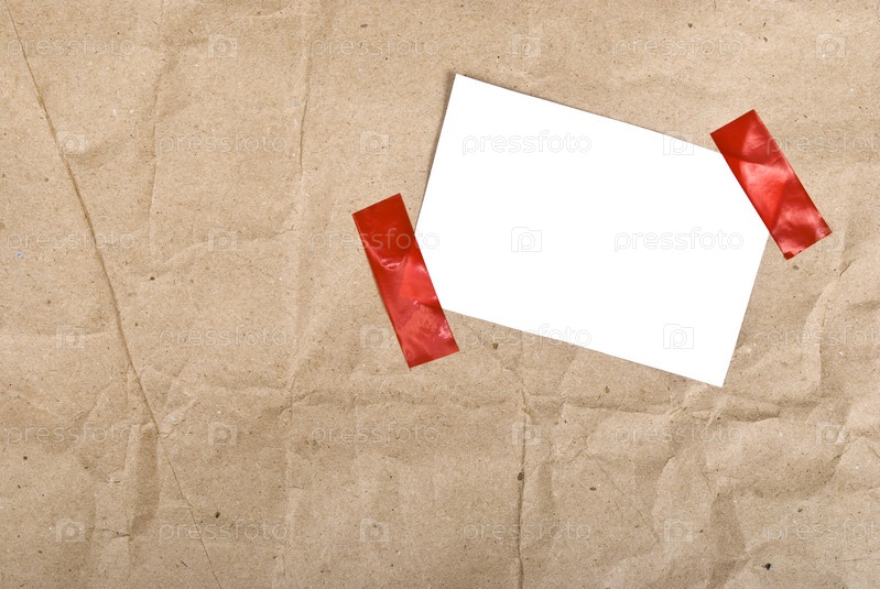 Почтовая посылка с карточкой, прикрепленной полосками красной липкой ленты
