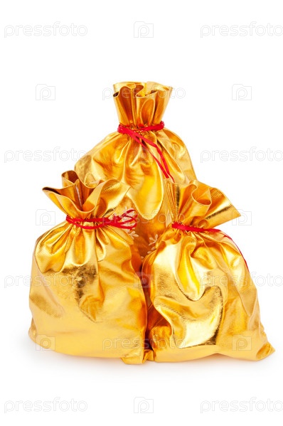 Три золотых мешка на белом фоне