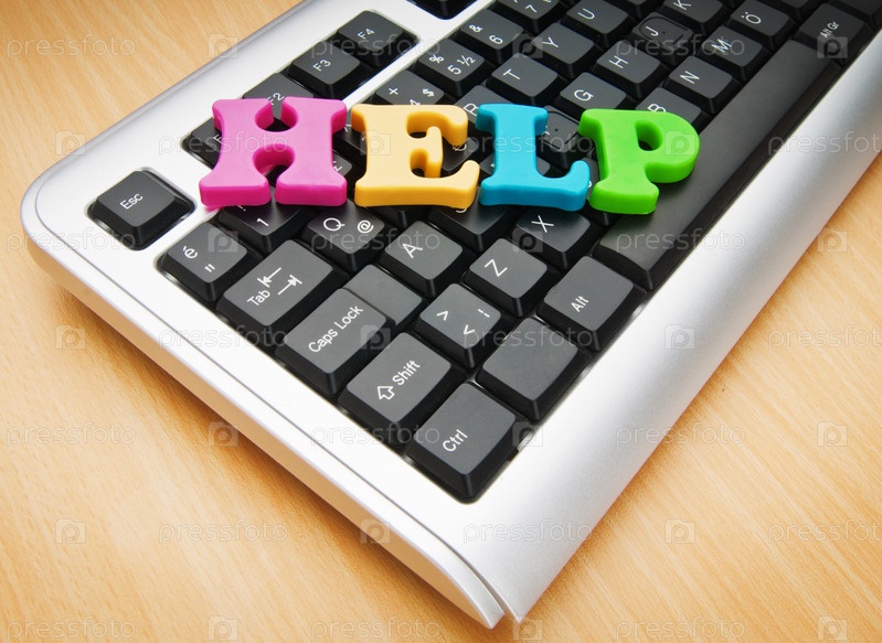 Слово HELP, выложенное на клавиатуре английскими буквами