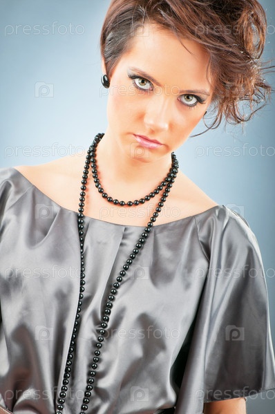 Красивая молодая женщина с черными бусами