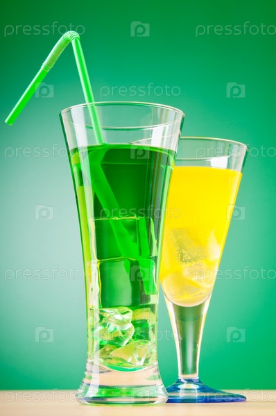 Два разноцветных коктейля на зеленом фоне