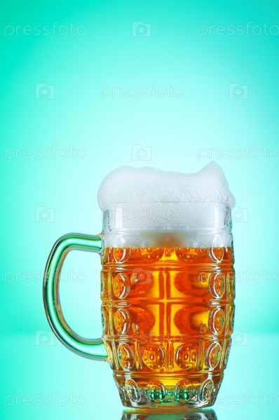 Кружка свежего пива на ярком фоне