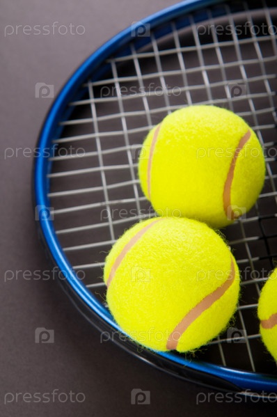 Теннисная ракетка с мячами крупным планом