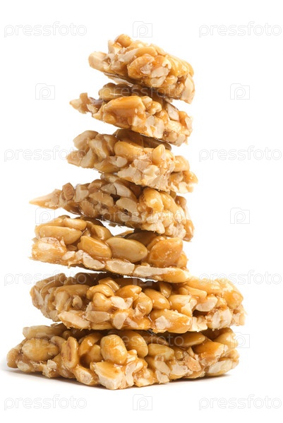 Башенка из козинаков на белом фоне