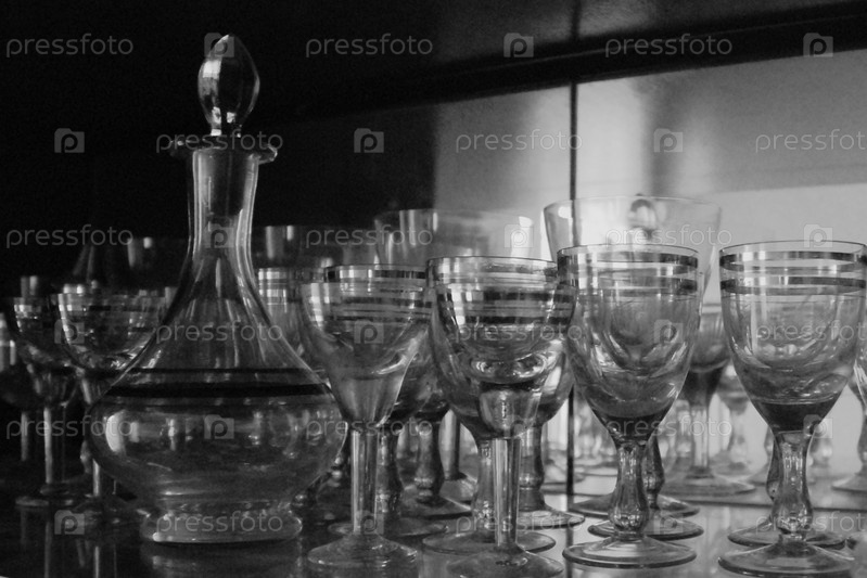 Прозрачные стеклянные бокалы и графин