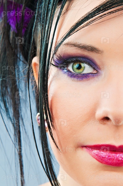 Половина лица красивой женщины с прической и ярким макияжем