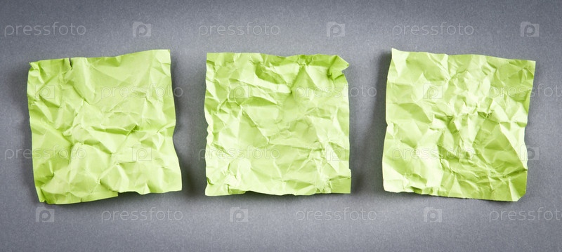 Три листа мятой бумаги на сером фоне
