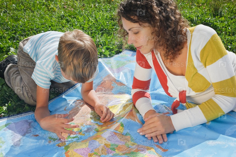 Мама и сын исследуют политическую карту мира