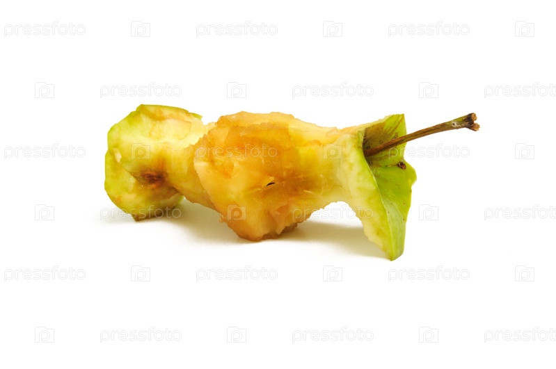 Огрызок зеленого яблока на белом фоне