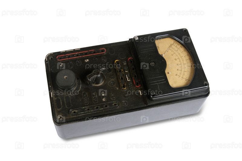 Старый прибор для измерения напряжения на белом фоне