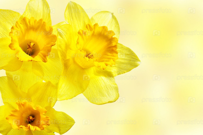 Три желтых нарцисса крупным планом