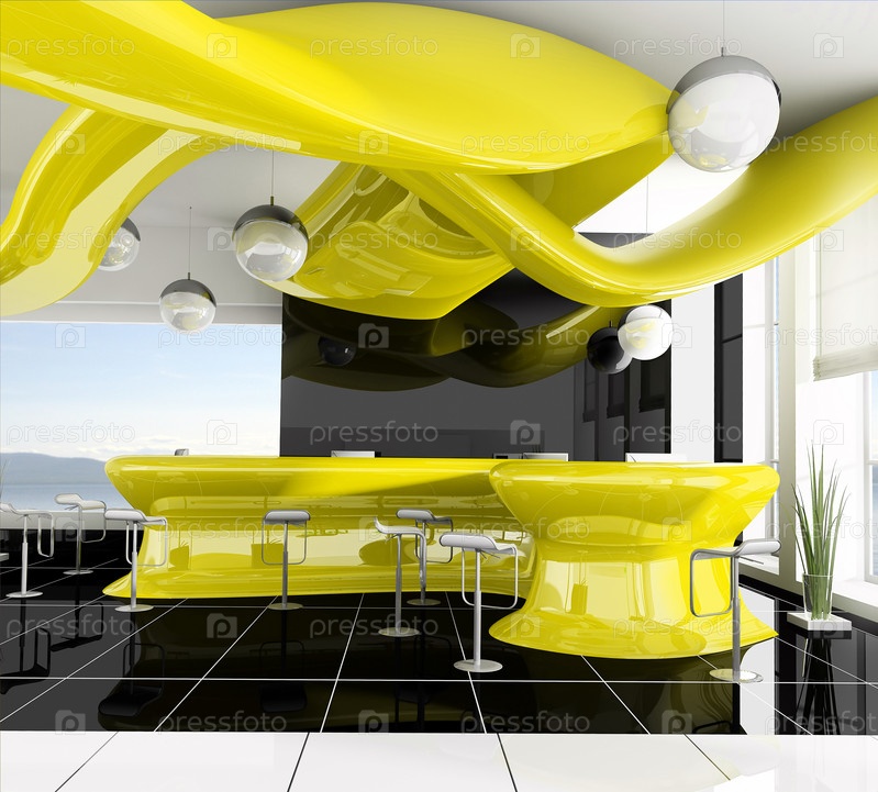 Яркий интерьер современного отеля, 3D