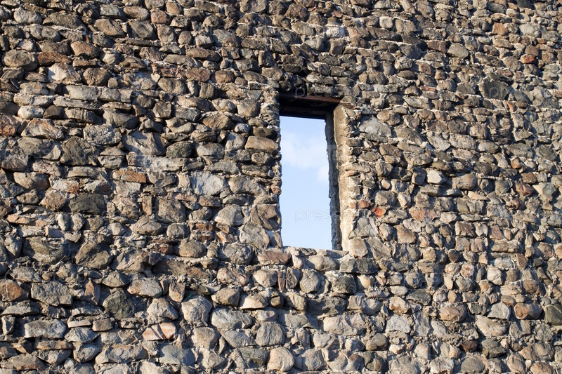 Окно в стене строго здания крупным планом