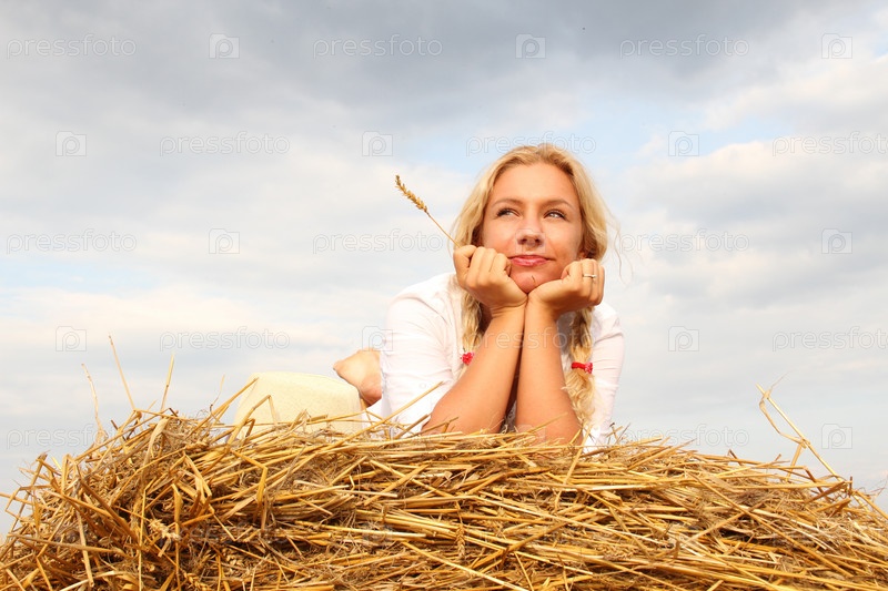Красивая женщина на стоге сена