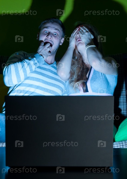 Мужчина и женщина смотрят страшный фильм