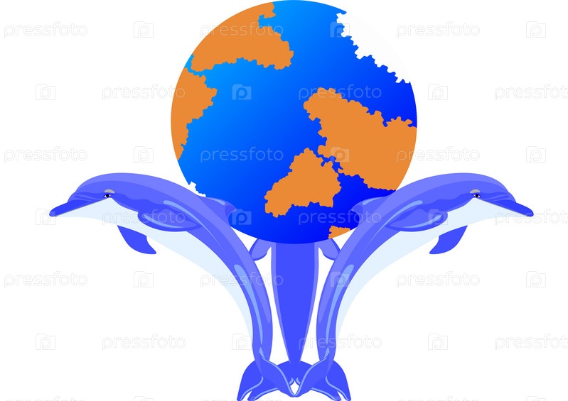 Земной шар и три дельфина