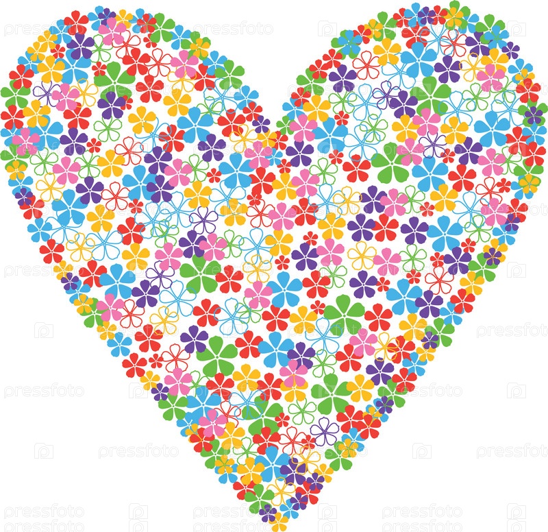 Векторное сердце из цветов на белом фоне