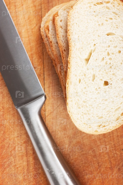 Нож и хлеб на деревянной доске