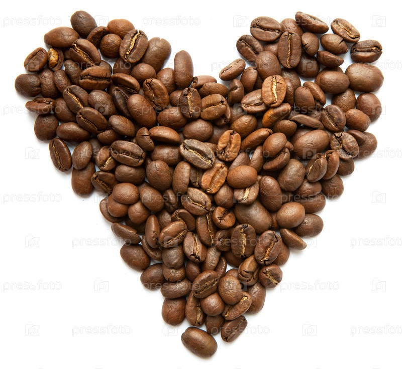 Сердце из кофейных зерен на белом фоне