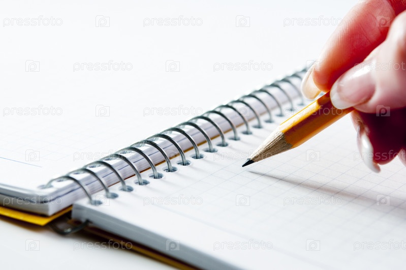 Женщина делает заметку карандашом в блокноте
