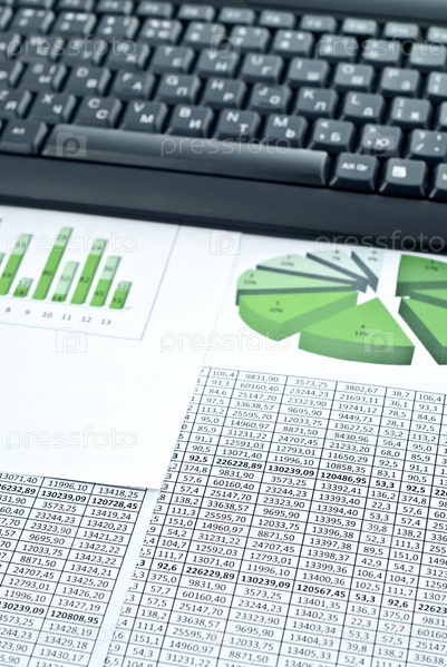Черная клавиатура, лежащая на финансовой диаграмме