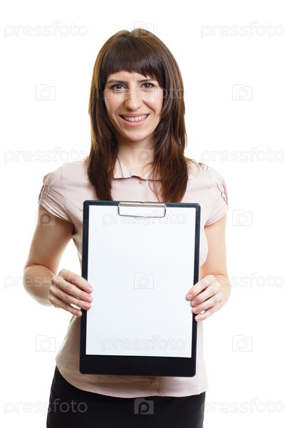 Девушка с папкой на белом фоне