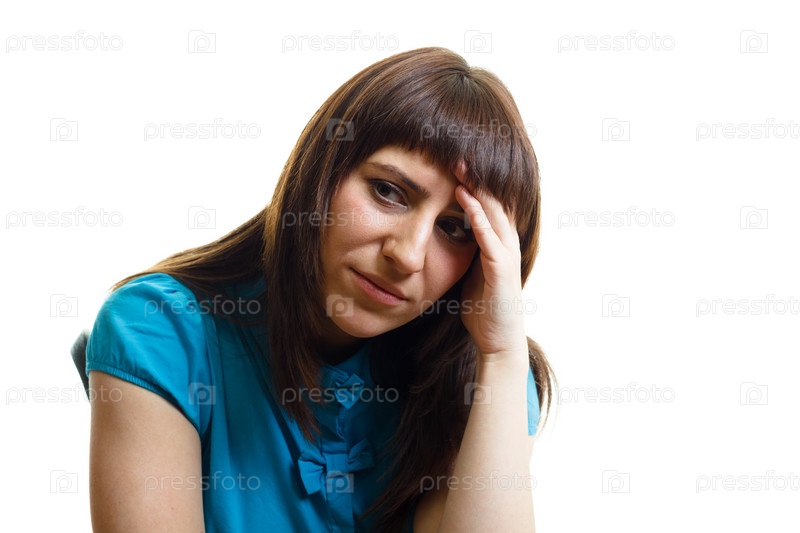 Расстроенная девушка на стуле на белом фоне
