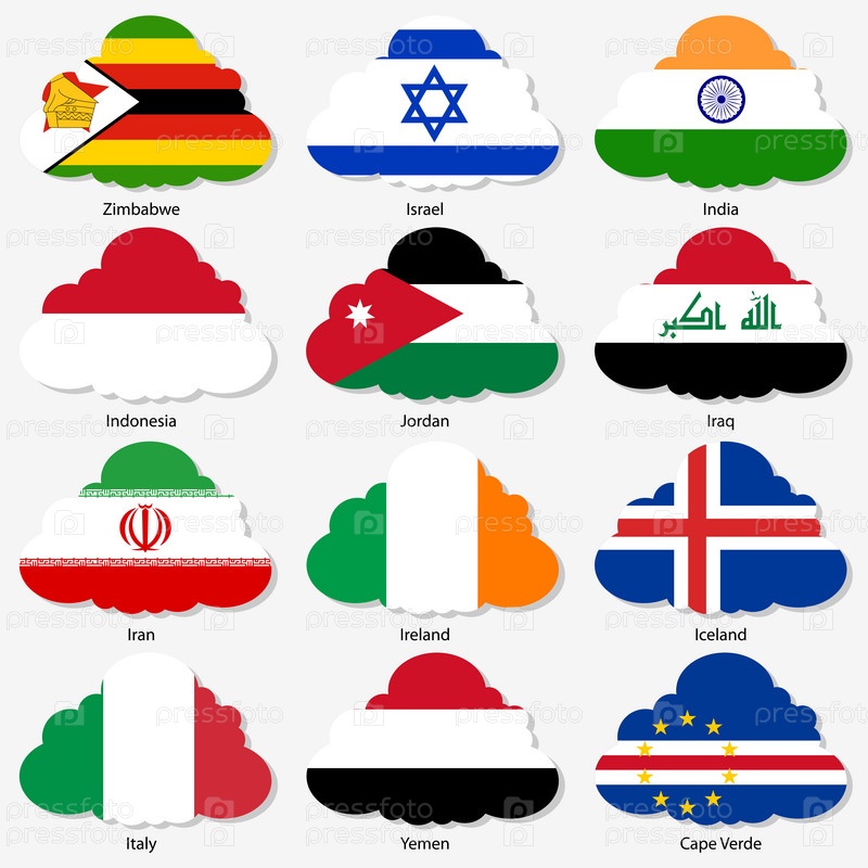 Флаги суверенных государств мира в форме облака. Векторные иллюстрации