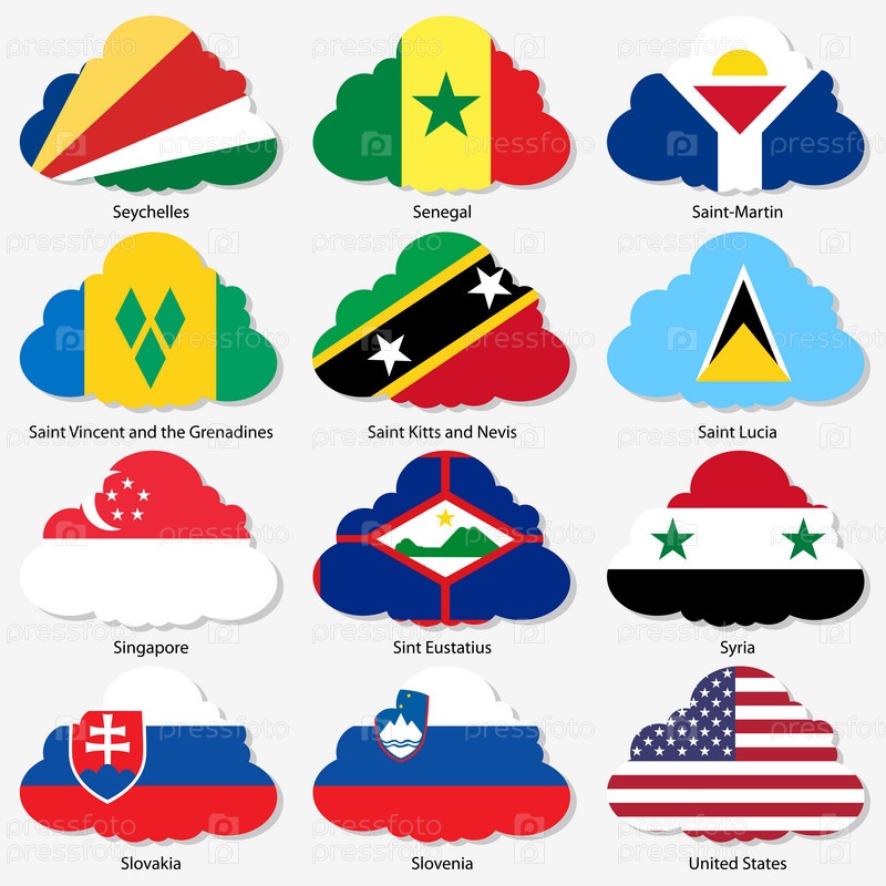 Флаги суверенных государств мира в форме облака. Векторные иллюстрации