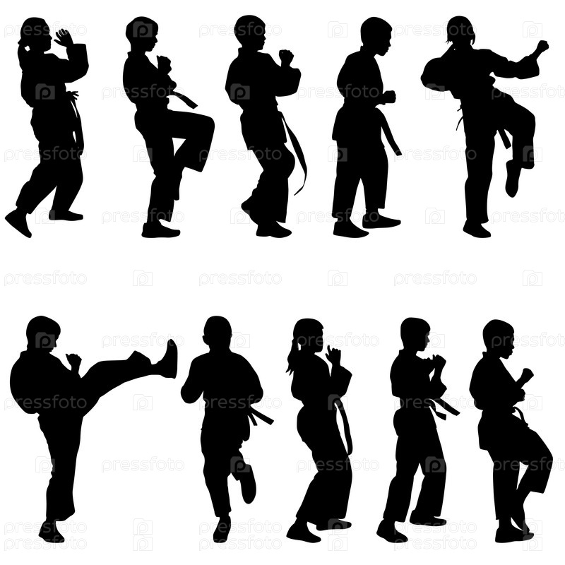 Набор черных силуэтов каратиста