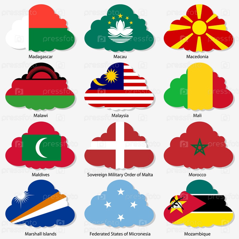 Флаги суверенных государств мира в форме облака. Векторные иллюстрации