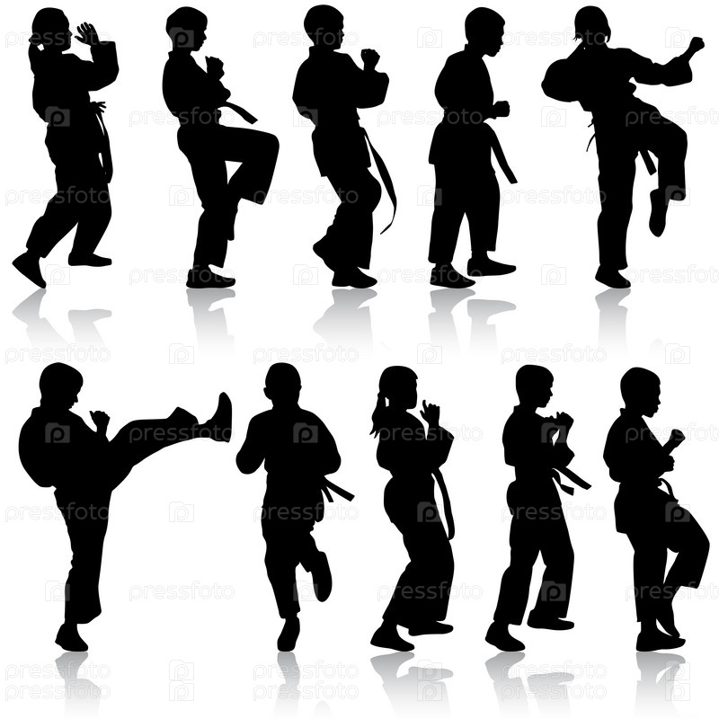 Набор черных силуэтов каратиста