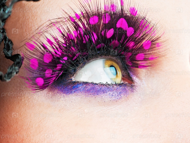 Накрашенный женский глаз с наращенными перьевыми ресницами