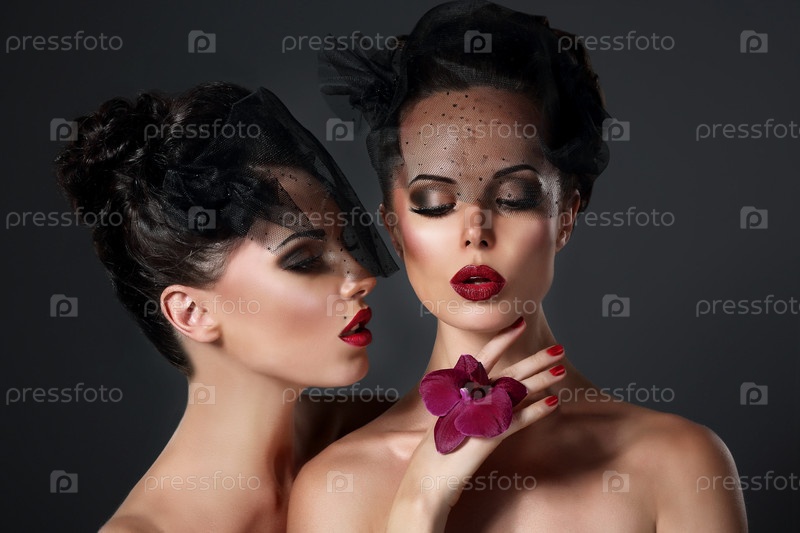 Две женщины с фиолетовым цветком