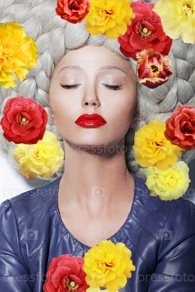 Женщина с закрытыми глазами и яркими цветами