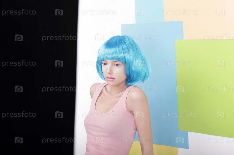 Девушка в синем парике