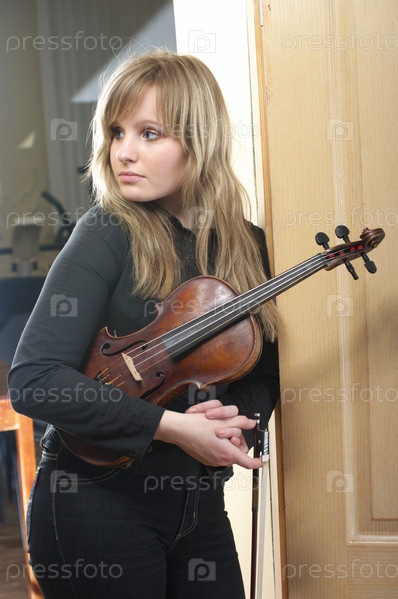 Красивая молодая женщина со скрипкой