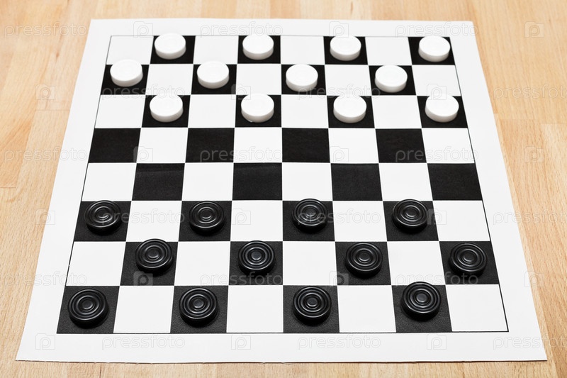 Черные и белые шашки на доске