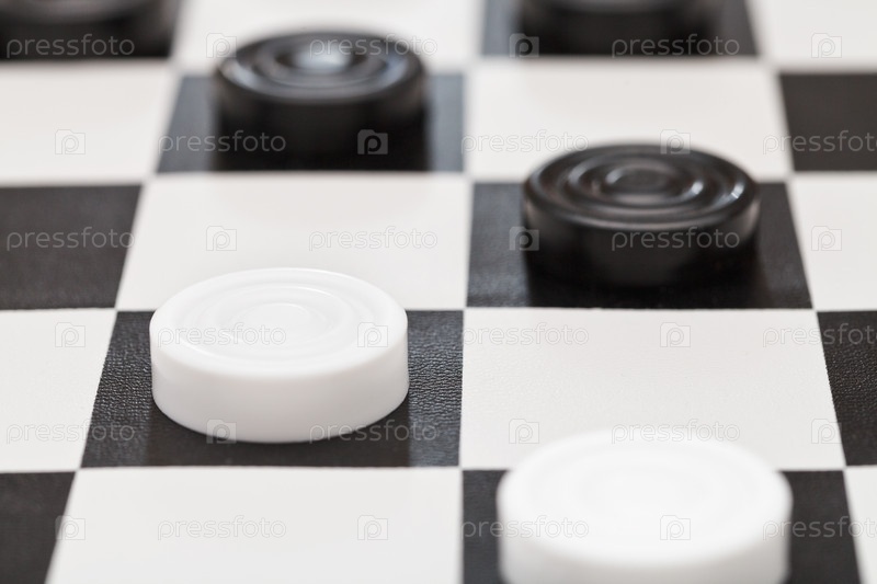 Черные и белые шашки на доске