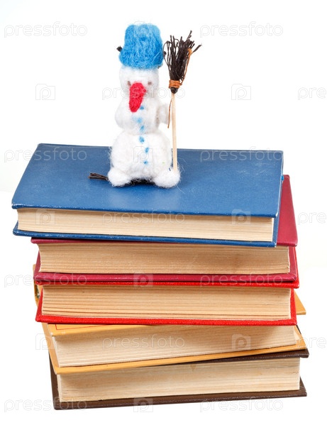 Игрушечный снеговик на старых книгах