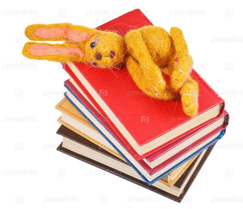 Игрушечный кролик лежит на книгах