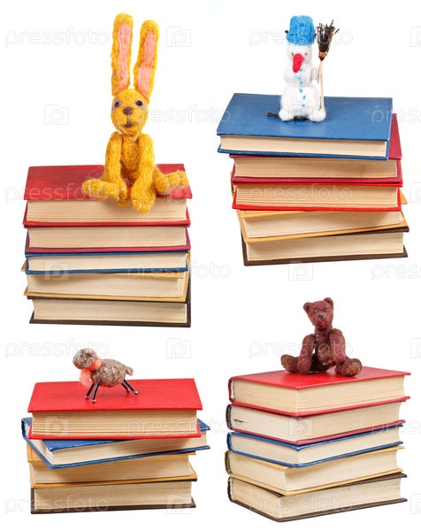 Войлочные мягкие игрушки на стопках книг