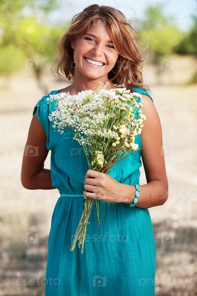 Девушка держит букет цветов
