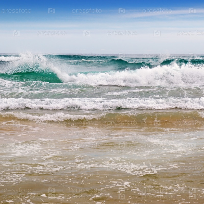 Море, песчаный пляж и голубое небо