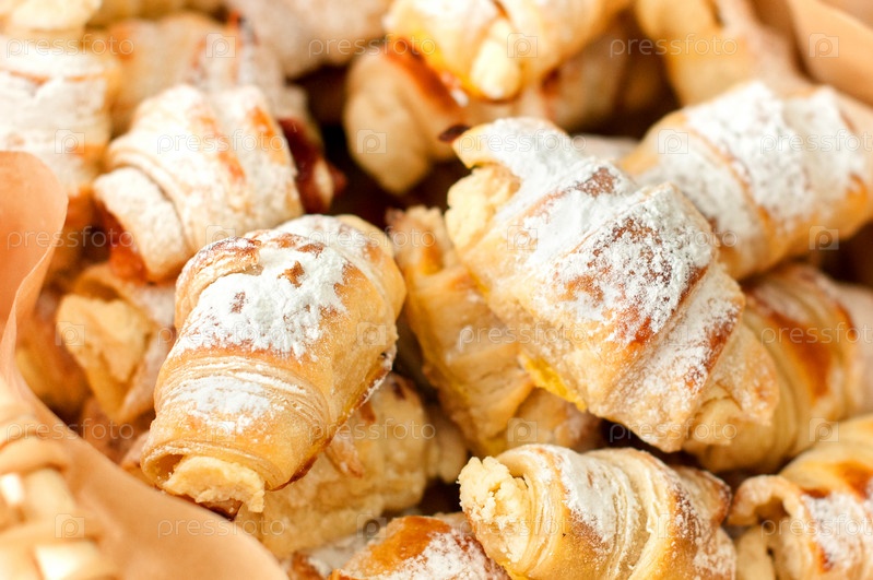 Вкусные домашние круассаны в корзине