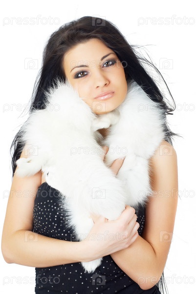 Привлекательная девушка в белом мехе