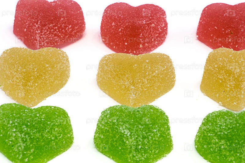 Зеленые, желтые и красные сердца