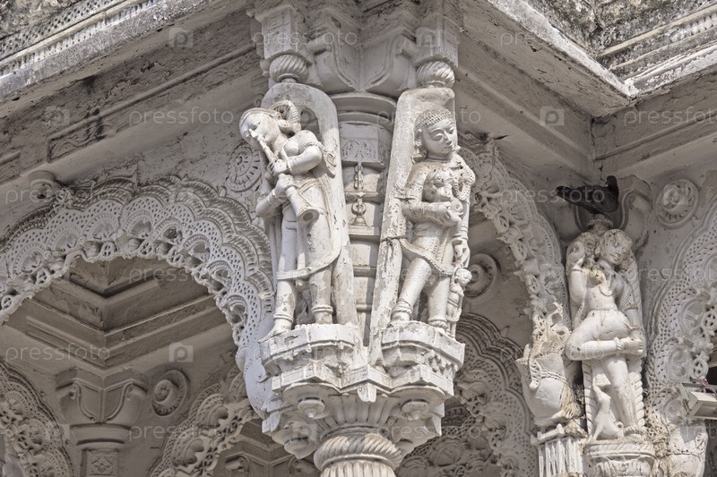 Ахмадабад, штат Гуджарат. Фигуры апсар на стене старинного храма в центре города