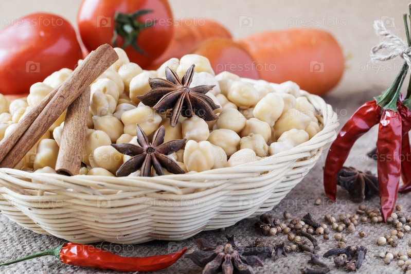 Горох, овощи и специи для индийской кухни