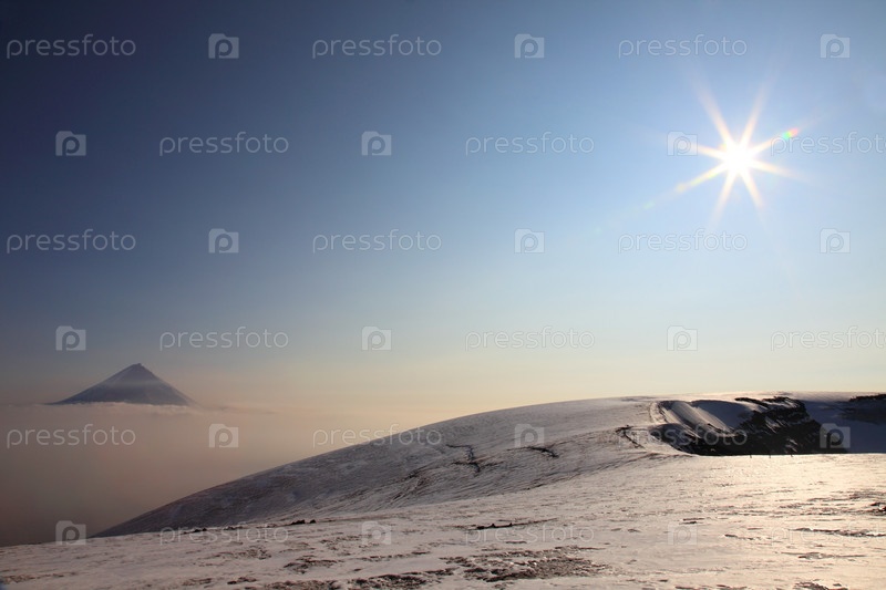 Ледник на вершине вулкана Плоский Толбачик. Камчатка